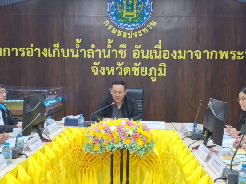 วันพฤหัสบดีที่ 25 กันยายน 2568 นายศุภรัชต์ อินทราวุธ รองเลขาธิการ กปร. เป็นประธานการประชุมติดตามความก้าวหน้าโครงการอ่างเก็บน้ำลำน้ำชีอันเนื่องมาจากพระราชดำริ ณ ห้องประชุมโครงการอ่างเก็บน้ำลำน้ำชีอันเนื่องมาจากพระราชดำริ จังหวัดชัยภูมิ ร่วมกับกรมชลประทาน ประกอบด้วย นายยุทธเขตต์ ยินดีทรัพย์ ผู้อำนวยการสำนักงานก่อสร้างชลประทานขนาดใหญ่ที่ 6 นายพงค์กรณ์ กำแหง ผู้อำนวยการสำนักงานก่อสร้างขนาดกลางที่ 6 นายพีรสิชฌ์ อนันต์วณิชย์ชา ผู้ช่วยผู้อำนวยการกองประสานงานโครงการอันเนื่องมาจากพระราชดำริ นายณัฐสิทธิ์ ธรรมะ หัวหน้าโครงการพิเศษ สำนักงานชลประทานที่ 6 และนายสมเกียรติ กิติวุฒิชูศิลป์ หัวหน้าฝ่ายวิศวกรรม โครงการชลประทานชัยภูมิ