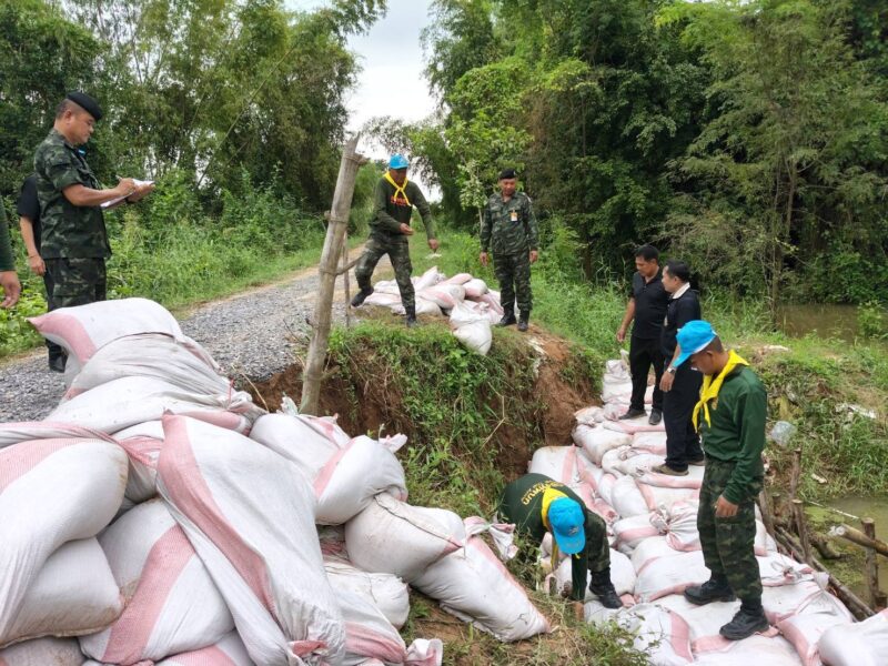 และ ศบภ.มทบ.27 โดย ชป.กร.มทบ.27 และ กำลังพลจิตอาสา ร้อย มทบ.27 ก่อกระสอบทรายนำไปเสริมความแข็งแรงปิดพนังกั้นแม่น้ำชี ที่ถูกน้ำเซาะเป็นเหตุให้เกิดดินสไลด์ จำนวน 2 จุด ณ พนังกั้นแม่น้ำชี บ.แซงแหลม ม.6 และ ระหว่าง บ.ดินดำ ม.9 ต.ดินดำ – บ.เขวาชี ม.1 ต.แสนชาติ อ.จังหาร จ.ร้อยเอ็ด