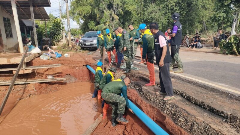 ศบภ.มทบ.21 โดย ช.2 พัน.202 และ สด.อ.พระทองคำ จัดเตรียมความพร้อม ร้อย.ชป ลงพื้นที่ติดตามสถานการณ์เกิดน้ำไหลหลากเข้าท่วมในพื้นที่บ้านเรือนประชาชน พร้อมทั้งขนย้ายสิ่งของขึ้นที่สูง ดำเนินการซ่อมแซมบ้านที่ได้รับผลกระทบ เพื่อป้องกันไม่ให้บ้านทรุดตัว และรื้อถอนบ้านที่ถูกกระแสน้ำพัดทำให้พังทั้งหลัง ณ ต.รังกาใหญ่ อ.พิมาย และ บูรณาการร่วมกับส่วนราชการที่เกี่ยวข้องสำรวจความเสียหาย ณ ต.มาบกราด ต.ทัพรั้ง อ.พระทองคำ จ.นครราชสีมา